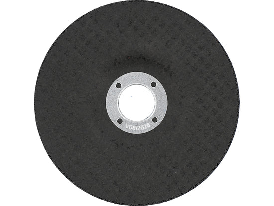 Abrasive: Alumina / corundum, resin‑bonded, depressed centre (convex) grinding disc.